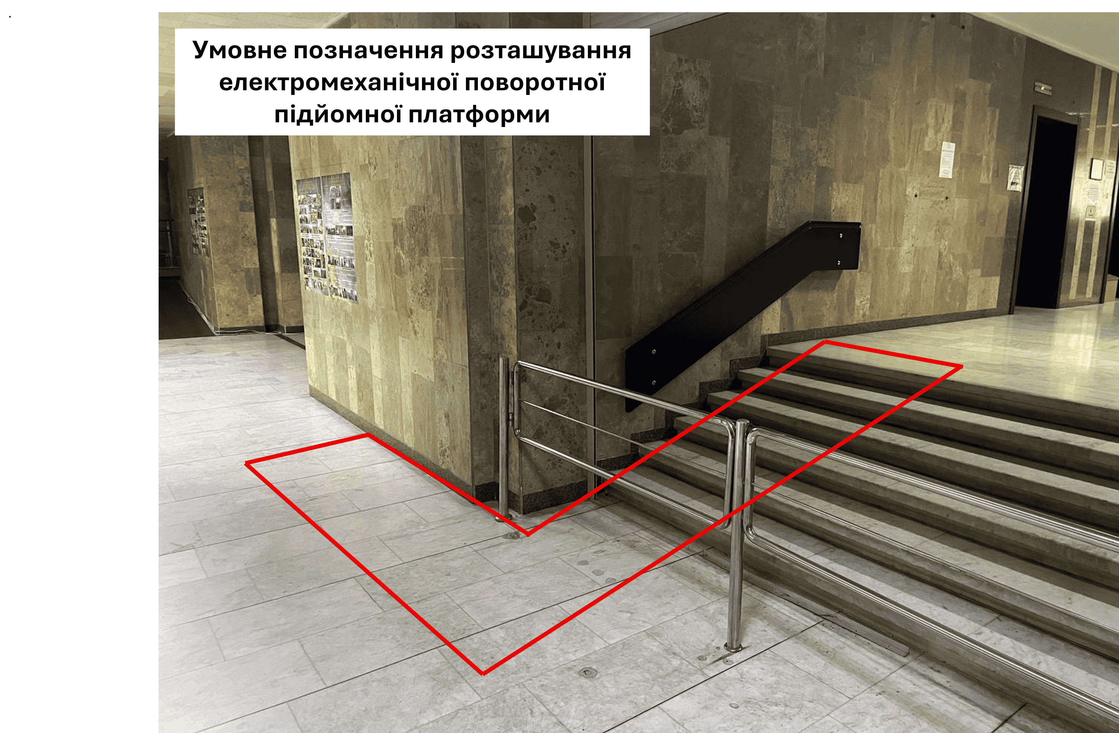 - з рейками та рівними заїзними/виїзними пандусами, які дозволяють особам на кріслах колісних легко та самостійно заїжджати на платформу й виїжджати з неї.