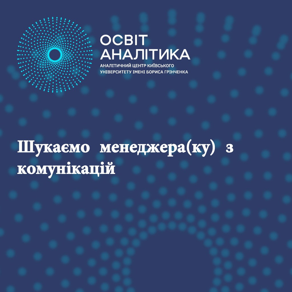 Аналітичний центр “ОсвітАналітика” Київського університету імені Бориса Грінченка оголошує конкурсний відбір менеджера(ки) з комунікацій на період вересень-грудень 2022 року. Резюме приймаються до 31 серпня 2022 року.