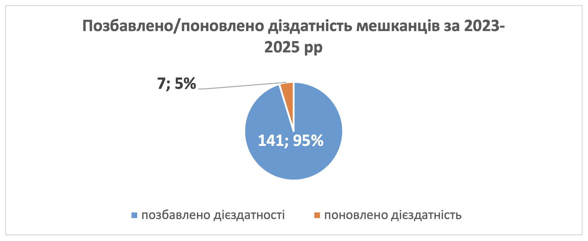 Натомість за той самий період недієздатними визнано 141 особу — у 20 разів більше, ніж поновлено! При цьому більше половини (51,8%) позбавлень дієздатності відбулося за ініціативою самих установ.