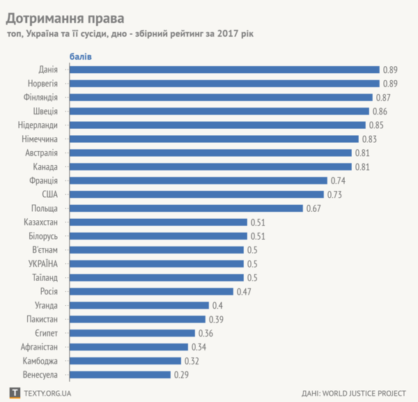 The World Justice Project (“Світовий проект правосуддя”) виміряв рівень дотримання права у 113 країнах світу.