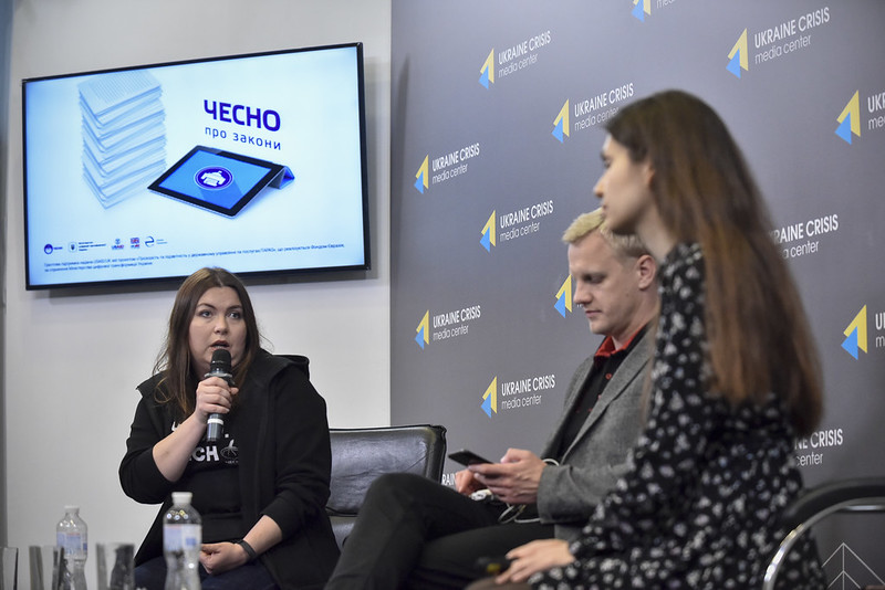 В прес-центрі Українського кризового медіа-центру Рух ЧЕСНО презентував чат-бот «ЧЕСНО про закони» на платформі Telegram. Він дозволяє відслідковувати усі законодавчі оновлення за ключовими словами, профільними комітетами та прізвищами депутатів Верховної Ради України.
