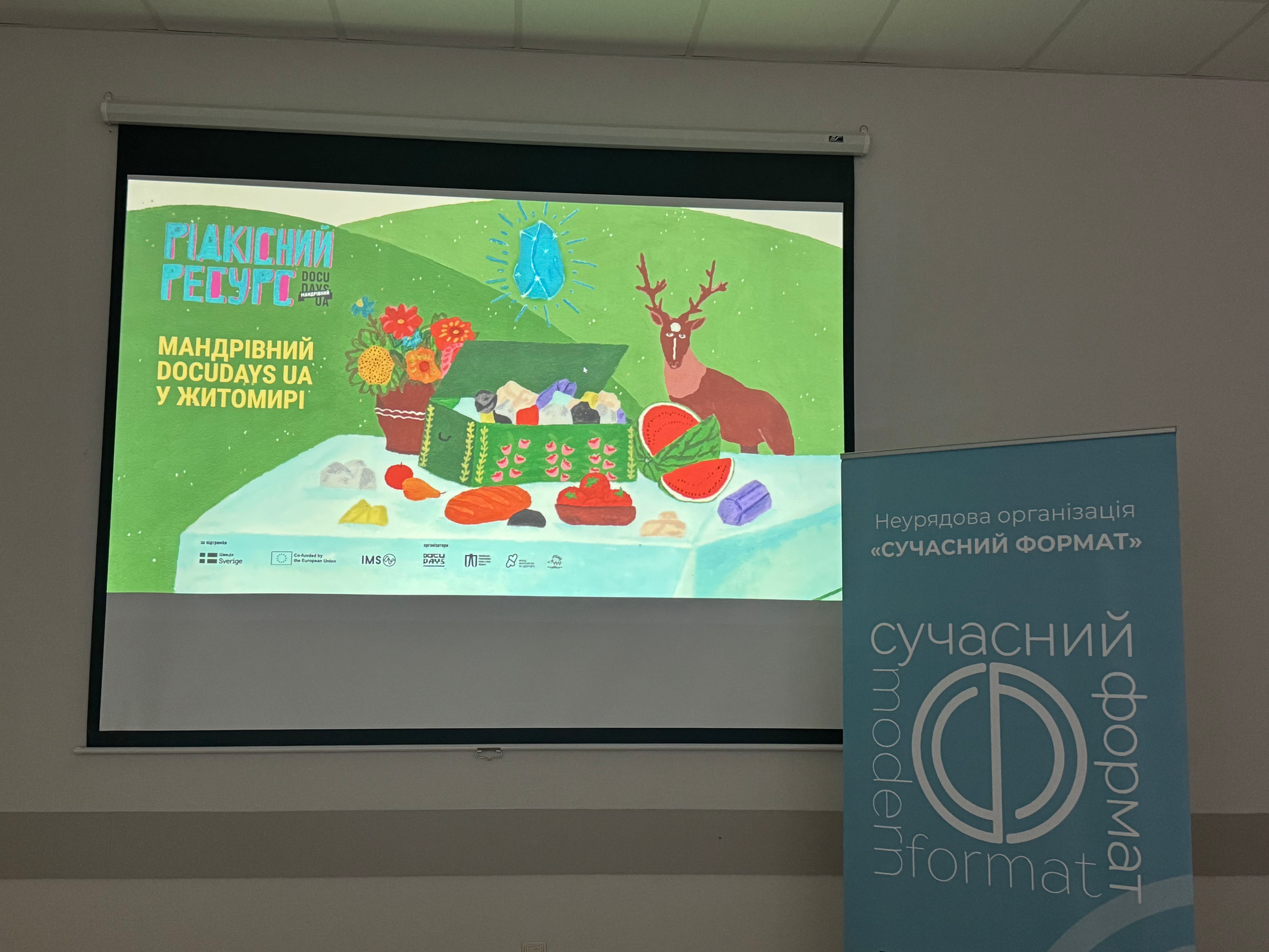 Відкриваючи подію, регіональна координаторка Мандрівного Docudays UA на Житомирщині Оксана Трокоз нагадала, що з 2009 року НУО «Сучасний Формат» привозить до Житомира Мандрівний Docudays UA – найбільший в Україні фестиваль документального кіно про права людини. «Мандрівний уже давно став для нашої спільноти не просто кінопоказами. Це простір довіри, розмов і взаємної підтримки, де ми вчимося слухати одне одного й осмислювати найскладніші теми», – зазначила координаторка.