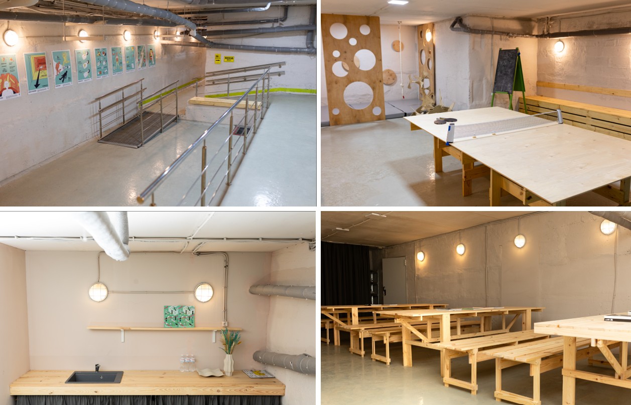 В укритті навчального корпусу Національного авіаційного університету акцент було зроблено на освітній функції — тут з’явилися лекційна зона та зона відпочинку.