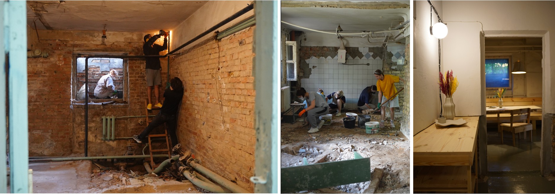 Так, у другому гуртожитку КНУБА в Києві укриття перетворилося на повноцінний багатофункціональний простір з робочими зонами, сценою та місцем для ігор. Саме завдяки активному залученню студентів до процесу переоблаштування сформувалася ініціатива «Сховок», яка й надалі розвиває простір, організовує події та залучає ресурси для його підтримки.