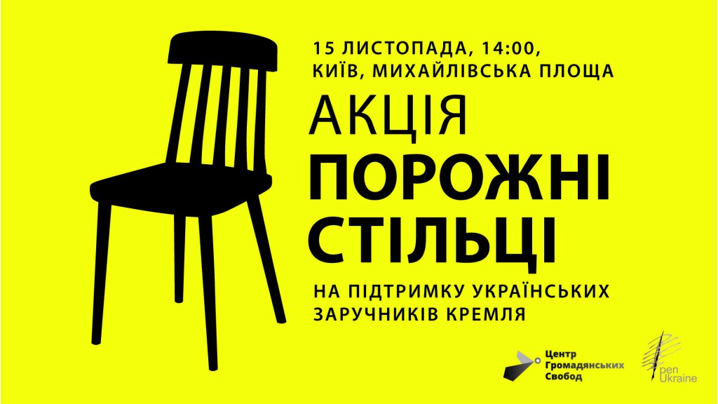 15 листопада о 14.00 на Михайлівській площі в Києві відбудеться акція “Порожні стільці” на підтримку українських політичних в’язнів у Росії й Криму, а також полонених у самопроголошених республіках на сході України.