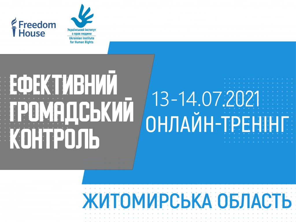 Український інститут з прав людини та Freedom House Ukraine запрошують вас на безкоштовний он-лайн тренінг, що відбудеться 13 та 14 липня 2021 року (з 10.00 год. до 13.00 год.) в рамках проекту “Ефективний громадський нагляд за безпековими службами в Україні”.