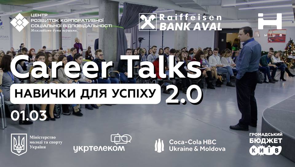 Реєструйся на «CAREER TALKS 2.0: НАВИЧКИ ДЛЯ УСПІХУ» – найкрутішу конференцію для молоді про успішну кар’єру, що відбудеться 1 березня 2019 року з 10:00 до 17:00 в iHUB Kyiv (вул. Хрещатик, 10) в рамках ініціативи “Український Пакт заради молоді-2020”.