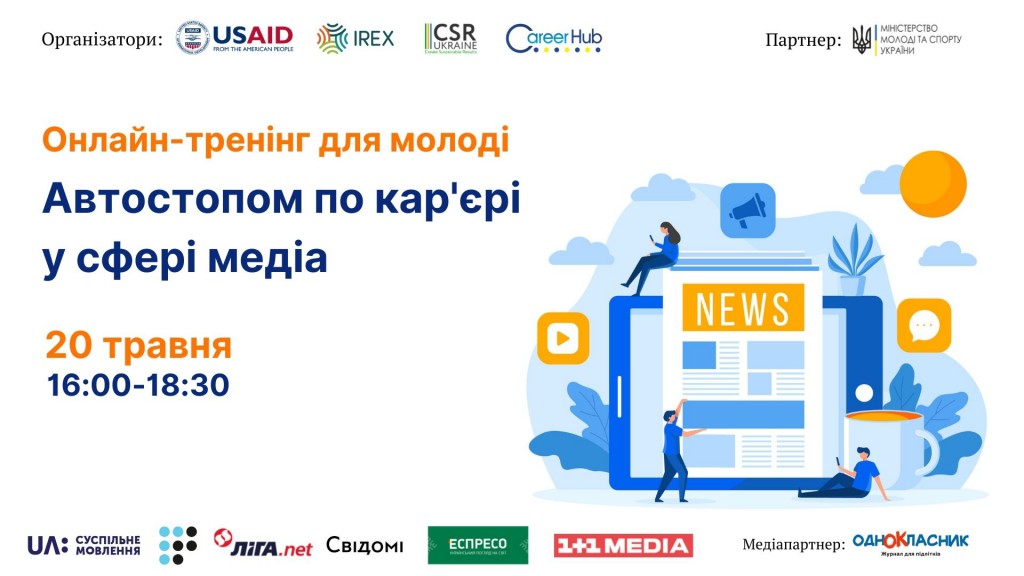 Мрієш працювати на телебаченні, чи вести ранкові ефіри на радіо, а може почати кар’єру в популярному онлайн-медіа чи започаткувати власне? Тоді реєструйся на наш онлайн-тренінг від від Career Hub і програми «Мріємо та діємо».